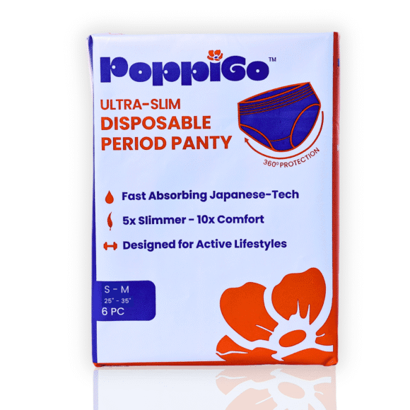 PoppiGo – India’s 1st Ultra-Slim Disposable Period Panty | 6pc | Rashfree, No-Leak | Japanese Gel Absorption for longer hours | Accurate Fit | Active Day & Night Use
